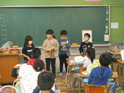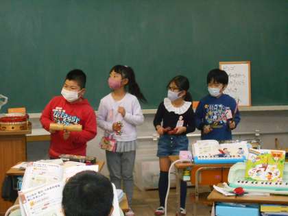 好きな打楽器を使い、リズム打ちをしました。どの班も工夫を凝らしていました。