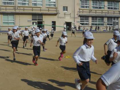 今朝のレベルアップランニングに続き,体育の時間もがんばって走りました。いよいよ金曜日はゴーゴーランニング本番です。