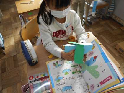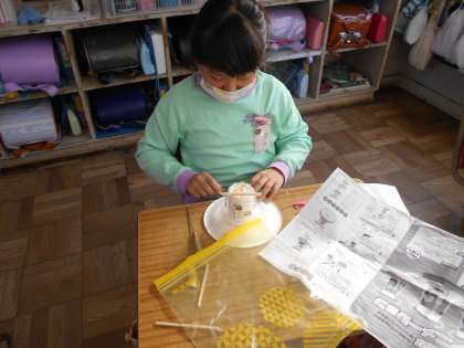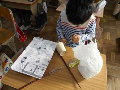 自分で選んだおもちゃを作っています。完成したおもちゃで遊ぶこともできます。