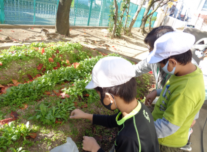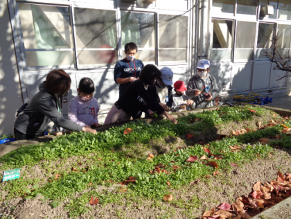 冬野菜、ラディッシュの収穫もしました。みんなで協力して水やりしたので、大きく育って嬉しいですね。落ち葉拾いや草抜きも頑張りました。