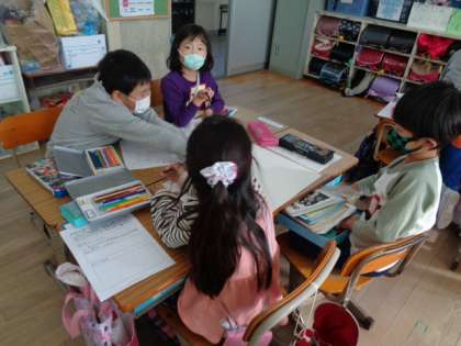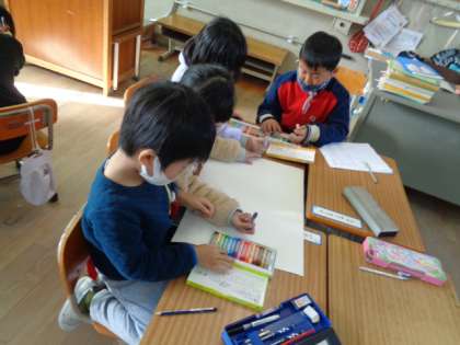 ワクワク広場に向けてグループでどんなお店にするか話し合って決めました。