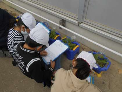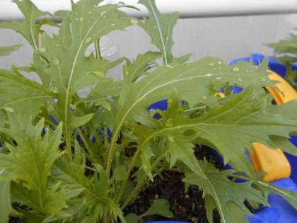 水菜がすくすく育っています。収穫が待ちきれない様子でした。