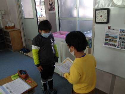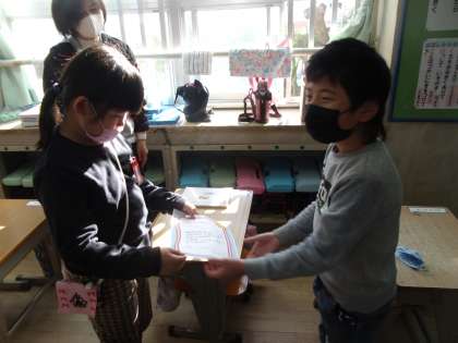 なかよしパソコンに来ている4・5年生から1・2・3年生にゴーゴーランニング賞として,賞状を渡しました。賞状をもらって嬉しそうにみえました。