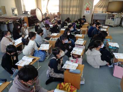 自分たちの合奏をビデオ鑑賞します。自分たちのいいところ,がんばらないといけないところ,しっかりフィードバックしましょう。
