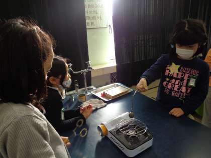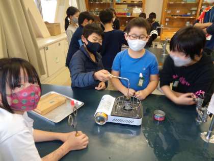 金属球を使って,ものの温まり方の実験です。
