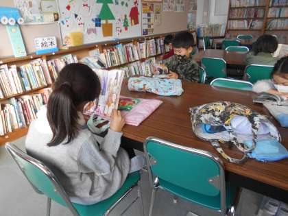 金曜日の午後は図書室で本を選び,ゆっくり読んで過ごします。みんな楽しみにしている時間です。