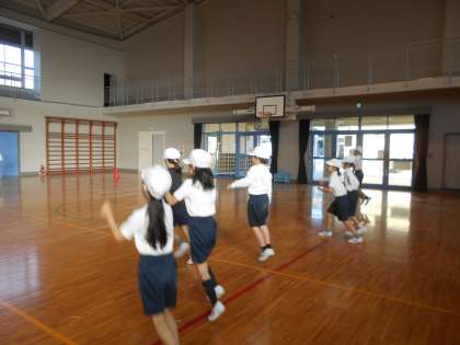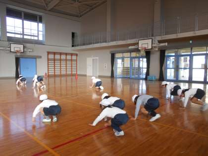まずは,動物になりきって体を動かしました。カンガルー,くま,アザラシ,うさぎ…一年生のころからずいぶん上手になりました。