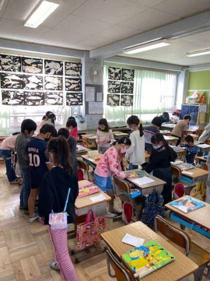 先週の図工では,出来上がったくぎ打ちゲームや絵の鑑賞会をしました。