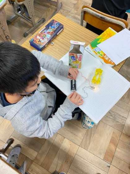 理科で豆電球が光るときの条件を調べる実験をしました。