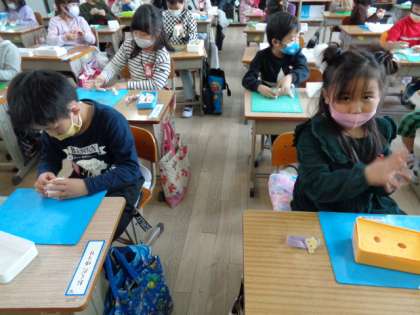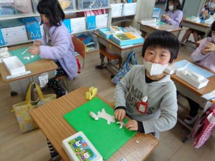 粘土作りをしました。動物と自分が散歩するところを表現しました。