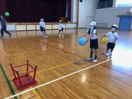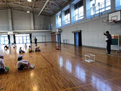 練習中,ボールが,かごの中に入る人もいて,とても喜んでいました。