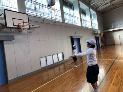 最後に,バスケットボールのボードやリングにボールを当てる練習をしました。