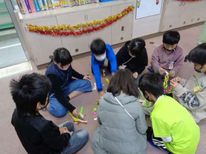 遊びに来ていたクラスのお友だちも一緒に輪飾りを作ってくれました。