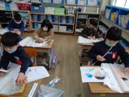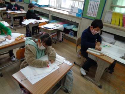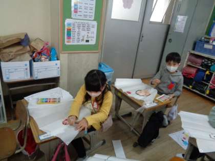 凧に絵を描きました。凧あげできる日が楽しみです。