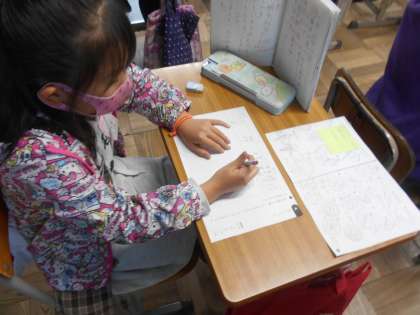 いろいろな遊びの本を見て,自分が気になる遊びをメモしました。今日は,そのメモをもとに友だちにあそび方を説明するための文を考えました。