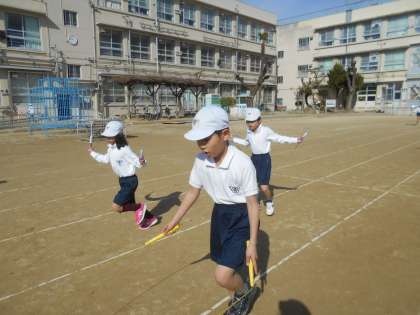 チャイムが鳴ったら,まずはかけ足とびで体を温めます。