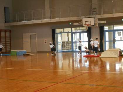 動物になりきって体を動かし,忍者になりきって跳び箱をどんどん跳び越えました。