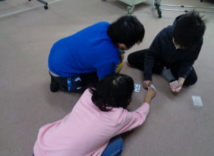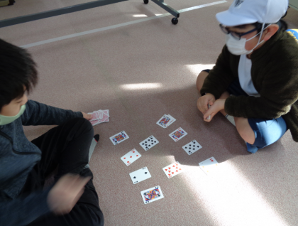 トランプでスピードやジジ抜きを楽しんでいます。先週の休み時間は、2年生が九九の修行で、4年生の友だちに聞いてもらっていました。