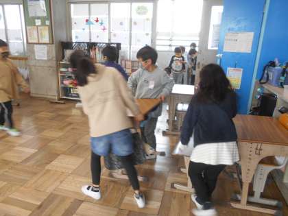 声をかけあって机を運んでいました。みんなで協力して掃除することができています。