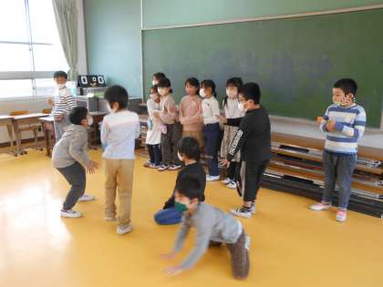 みんな遊び係さん中心に、「だるまさんがころんだ」をしました。笑顔いっぱいです。
