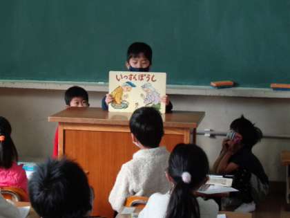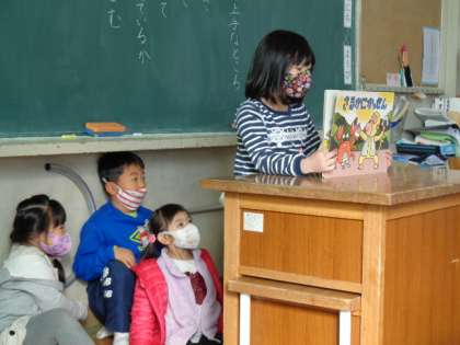 紙芝居の発表の続きをしました。どの班も上手に読めていました。