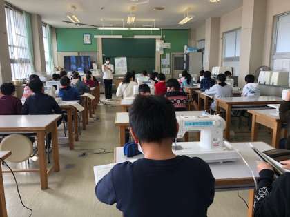 今日は家庭科室で,ミシンの学習をしました。名前を覚えるために実際に触りながら学習しました。
