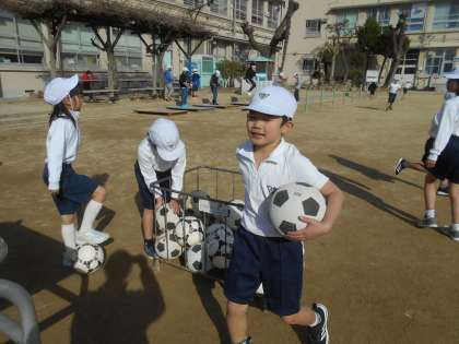 体育の前の時間に,ボールを使って遊んでいました。