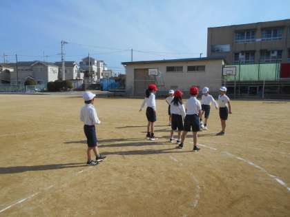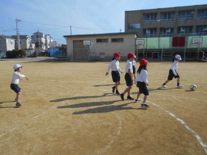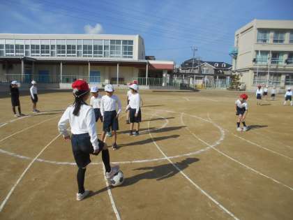 キックサークルシュートゲームのスタートです。まずはルールを確認しながらしました。