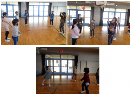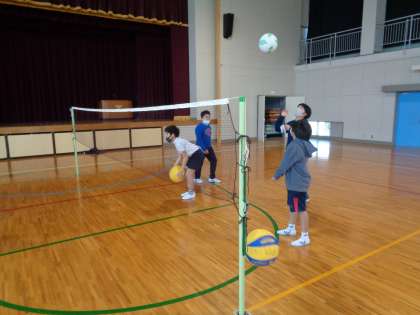 コートでネットをはさんでパスしたり、円になってパスをしたりしました。