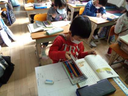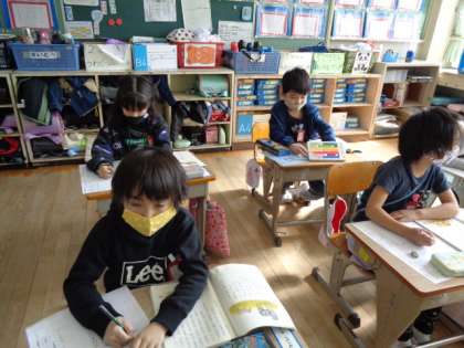 「どうぶつの赤ちゃん」を読んで二匹の動物の様子を比べました。