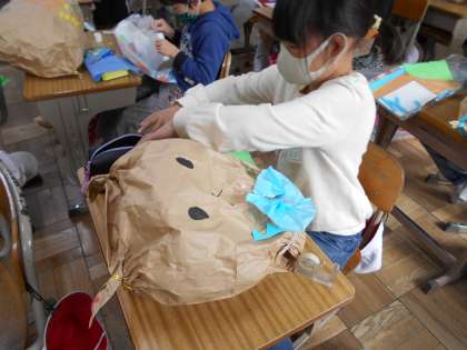 「くしゃくしゃ ぎゅっ」を工夫しています。かわいく出来上がっています。