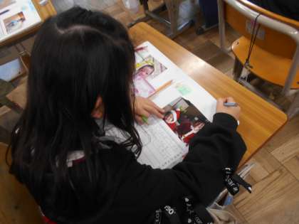表紙ができた人から,中のページもおしゃれに色ぬりしていきました。
