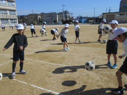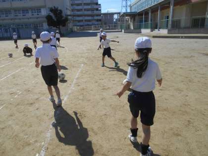 ドリブル!シュート!とかっこよく走っていました。