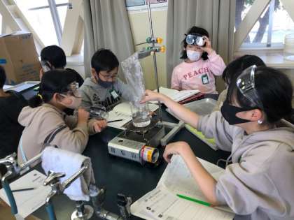 5〜6時間目に,理科室で,「水を熱していくと出てくる泡の正体を調べよう!」という実験をしました。