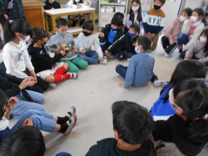 今日は雨なので,教室での遊びです。爆弾ゲームのようですね。