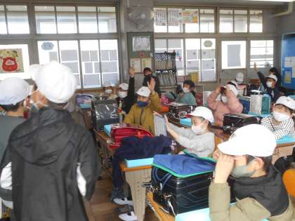 クイズ係が問題を出してくれました。難しい問題も,分かると「あぁ〜!」と声が出ておもしろいです。