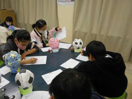 風船ランプが完成し,今日は作品を鑑賞しました。