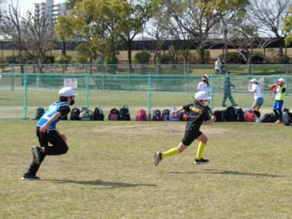 今日は,お別れ遠足の代わりに金岡公園の野球場に行き,スポーツフェスティバルをしました。最初に逃走中をしました。ハンターから捕まらないように必死に逃げていました。次に,テレビ番組で有名なリアル野球盤をキックベースでしました。ヒットを打てるようにしっかりとボールを蹴っていました。
