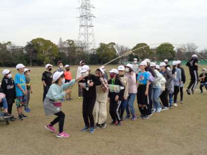 最後に,長縄をしました。初めに男女に分かれて一斉跳びをしました。6年生といえど,一斉跳びは難しいそうで,苦戦しました。次に,6年生全員で交互飛びをしました。3分300回を目指し,集中して跳んでいました。