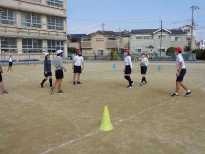 ラインサッカーをしました。久しぶりのサッカー,楽しくやれましたね。