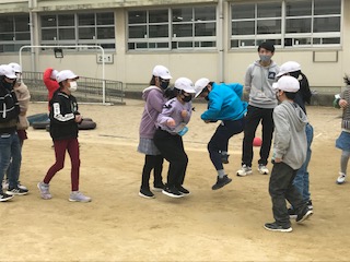 力を合わせて長縄頑張ります。先生の「クラス新記録〜!」という元気な声が響いていました!おめでとう!!
