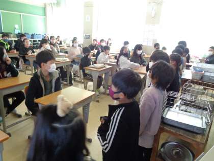 「明日の卒業式がんばってください。」、「ファイトー!」と気持ちを込めて伝えました。6年生も嬉しそうでした。明日の晴れ舞台、みんなで応援していますよ。いい式にしてくださいね。