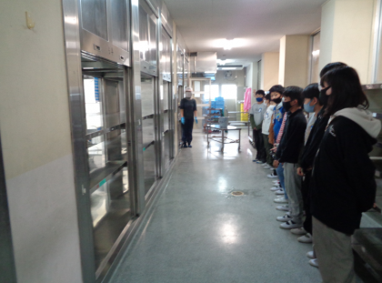 調理員さんに、感謝の気持ちを伝えました。暑い日も寒い日も、おいしい給食をありがとうございました。また4月からもよろしくお願いします。