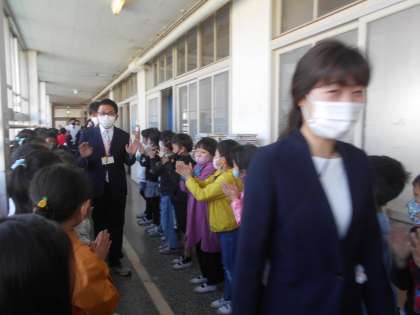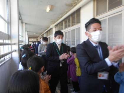 テレビで生放送されました。去られる先生方の名前を聞いて,「え〜!」と驚いたり,悲しんだりしていました。拍手をして見送りました。