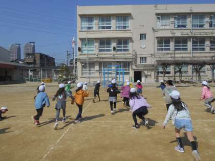 2年生最後の校庭では,「だるまさんがころんだ!」で大盛り上がり。楽しい時間が過ごせました。