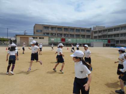 2年生で初めての体育でした。並び方やルールを確認したあと,みんなで鬼ごっこをして楽しみました。