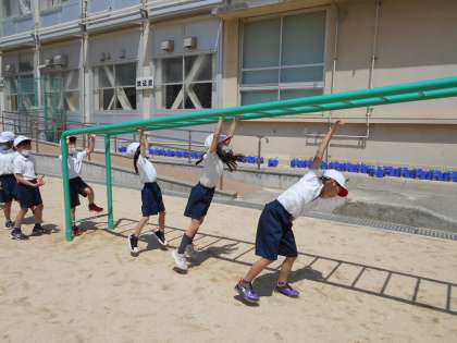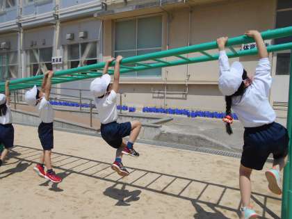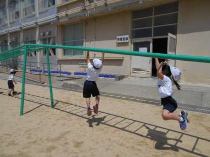 次は,うんていをしました。ヨコわざ,一つとばしわざ,うしろむきわざなど,上手なひとがたくさんいました。