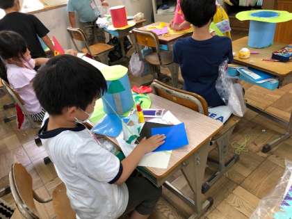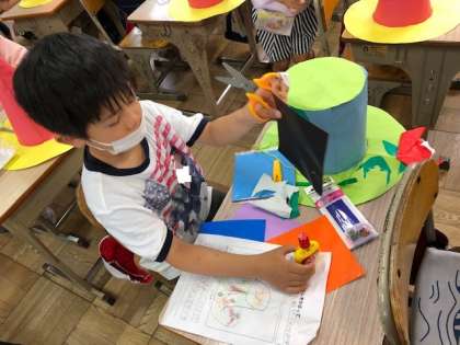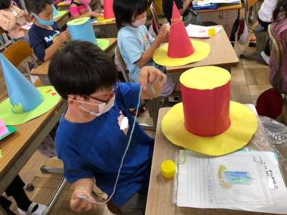 折り紙や毛糸を使って,すてきな帽子作りをがんばっていまし