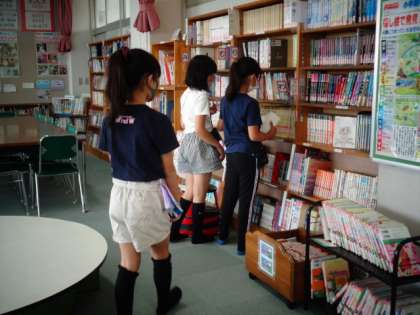 図書の時間が終わった後に数人で残された本を片づけたり,