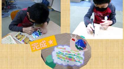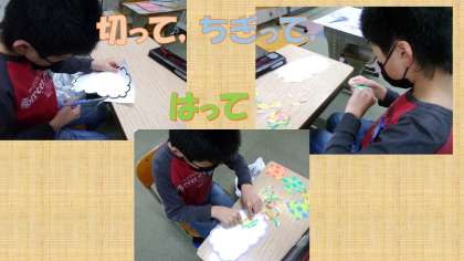 雨が降っていた今日は,あじさいとカタツムリをいろいろな技法で作りました。